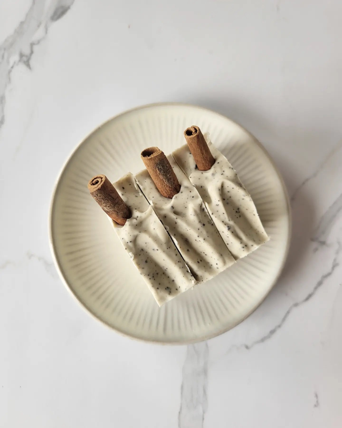 Each bar of soap is hand cut, so they will vary slightly in design and size.