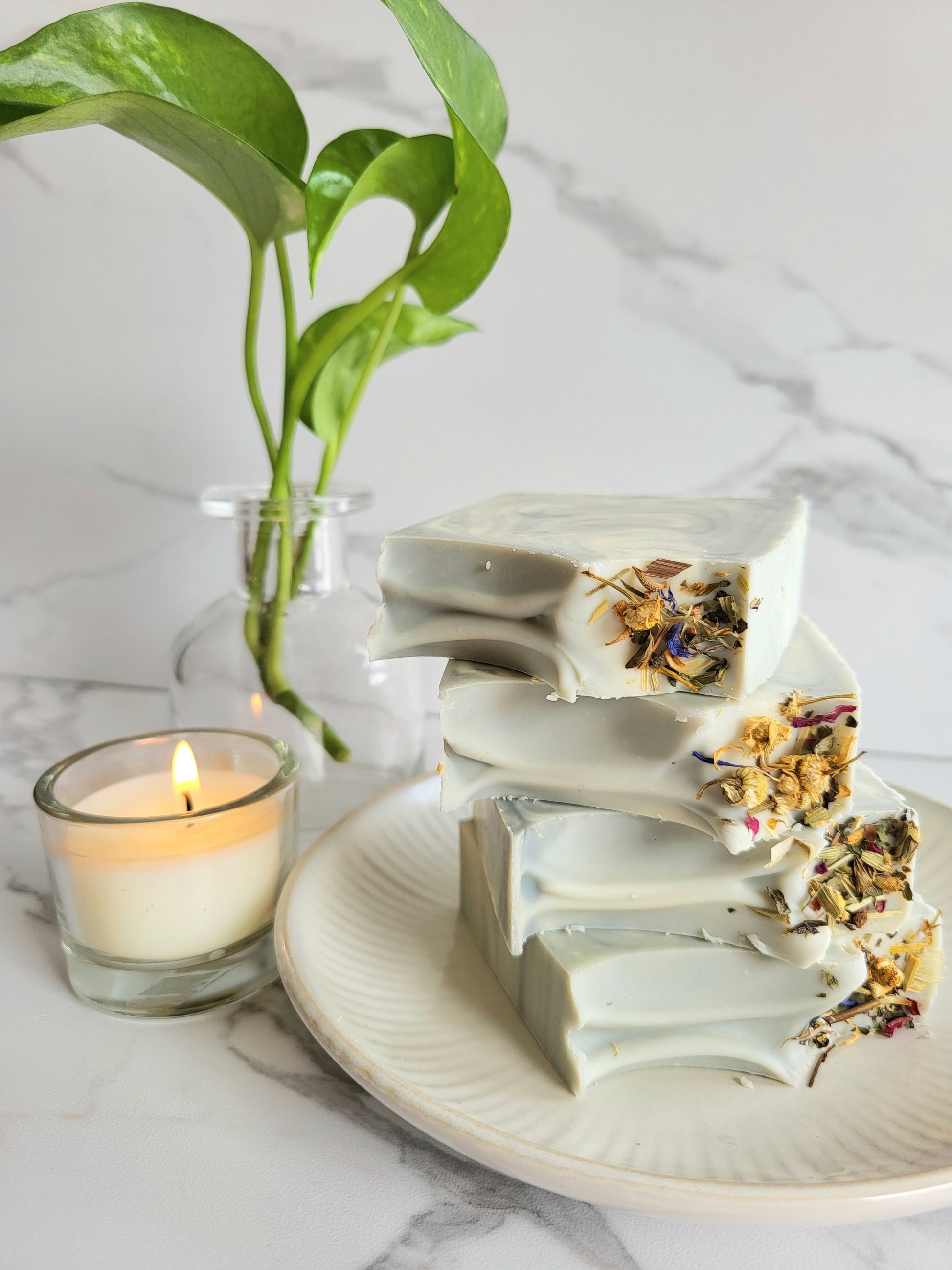 London Fog, need I say more? This is my absolute favorite hot drink besides fresh lemon, ginger and honey tea! So I just had to make a soap bar to match.